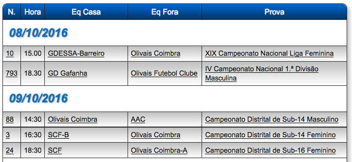 Eis os jogos das equipas do Olivais para o próximo fim de semana.